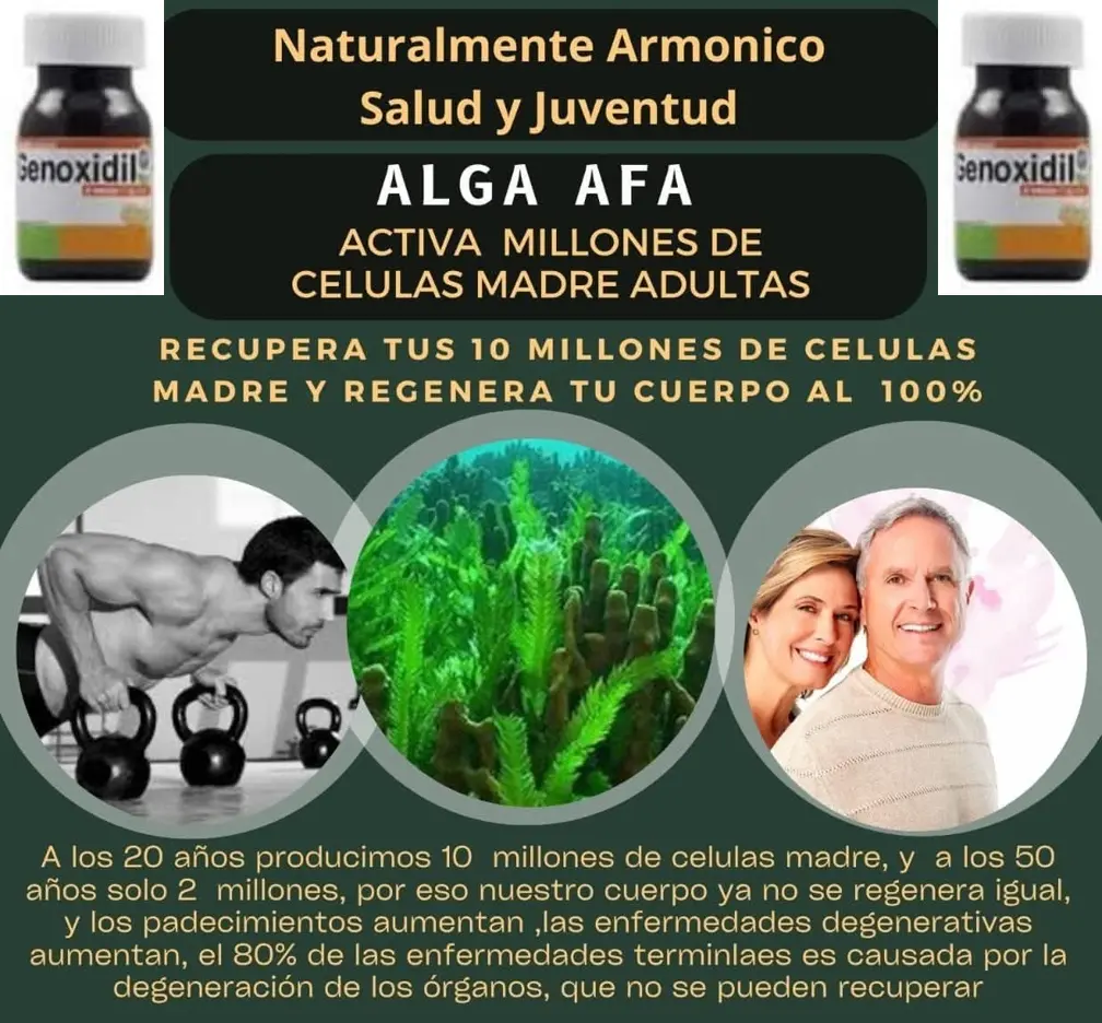 Probar la tecnología, de lisados y de los fitonutrientes de Genoxidil, con células madre maduras y sus 50 activos, dale a tu Adulto Mayor un lisado de bioptimar con factores de crecimiento celular, especifico para adultos mayores donde puedan regenerarse al máximo sus órganos vitales, y nútrelos con Genoxidil, y que además activa sus células madre maduras, y comienza a nutrirte tu a cualquier edad.